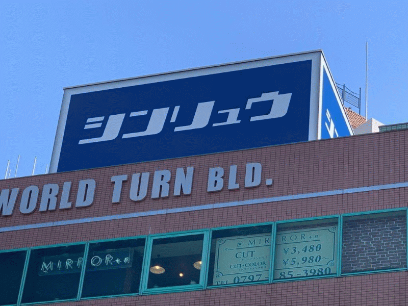 この度 宝塚駅近く、ワールドターンビルの屋上看板が新たに生まれ変わりました。