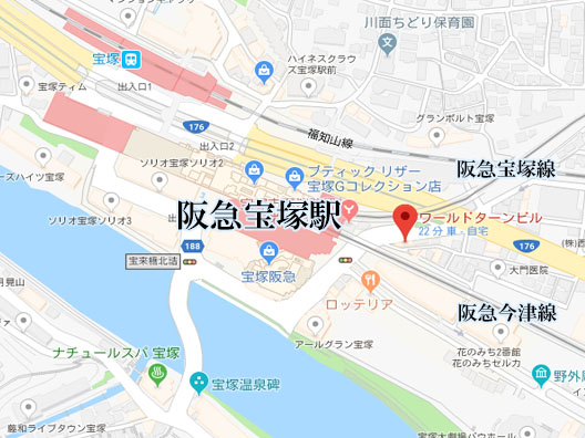 阪急宝塚駅近く、阪急宝塚線と今津線の間